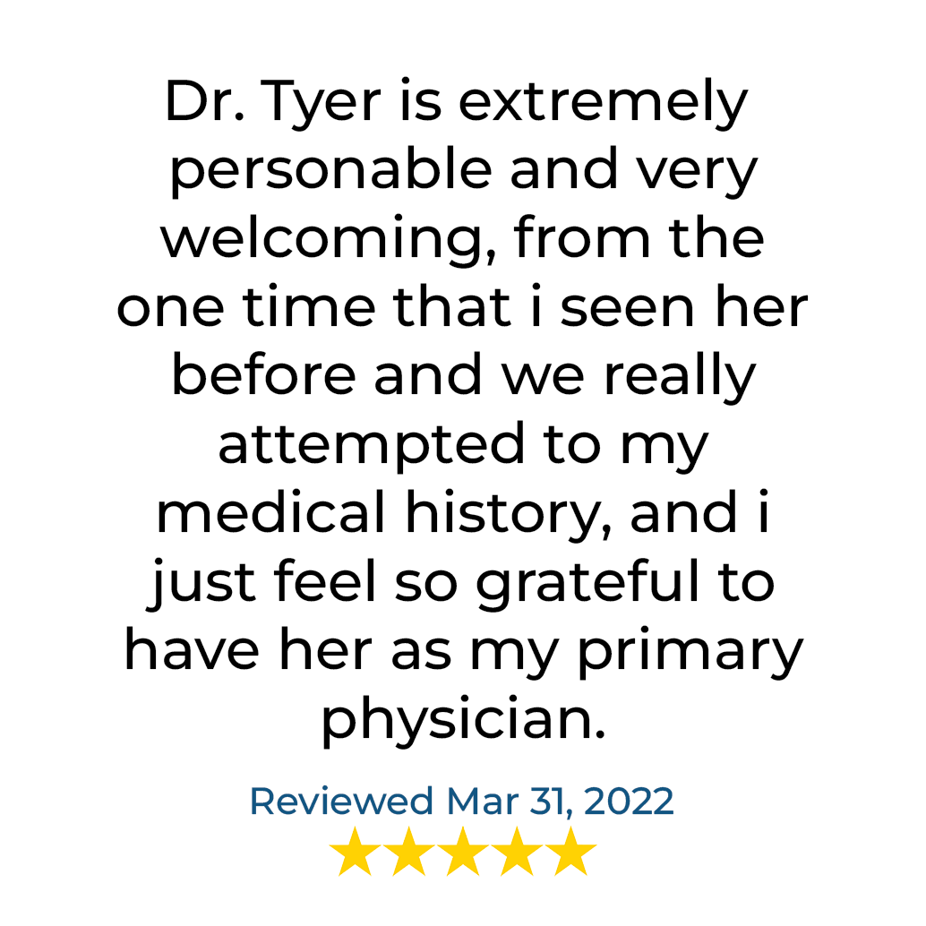 Dr. Nicole Tyer is double board certified in Internal Medicine and Obesity Medicine. She finds joy in giving her patients the time and dignity they deserve through highly comprehensive and compassionate care, listening to her patients concerns so they are fully understood, and to help find pragmatic solutions to improve their health. Her patients describe her as thorough, caring, and responsive.